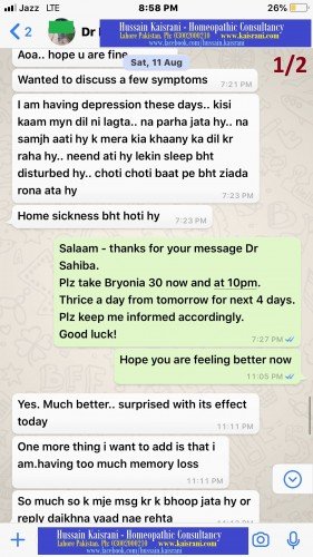اگر تکلیفیں پرانی ہو جائیں یا شدت بہت زیادہ ہو تو مریض اپنے آپ کو غیر محفوظ سمجھتا ہے۔ اُسے گھر کی یاد (Home Sickness) ستاتی ہے. مریض اصرار کرتا ہے کہ مجھے گھر لے چلو۔ بعض اوقات گھر میں ہوتے ہوئے بھی وہ کہے گا کہ مجھے گھر جانا ہے۔ ان مریضوں کی تمام تکلیفیں رات نو بجے کے قریب خاص طور پر بڑھنے کا امکان ہوتا ہے۔