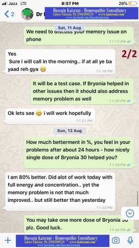 یہ تو ہوا اُن تکلیفوں اور دردوں کا ذکر کہ جو (Acute) ہوں یعنی ابھی یا چند دن پہلے شروع ہوئے ہوں۔ اوپر بیان کی گئی کوئی بھی تکلیف ہو اُس کے لئے برائی اونیا (Bryonia Alba 30) کی تین خوراکیں چار دن روزانہ دینے سے، اللہ کے کرم سے واضح بہتری آ جائے گی۔ اس دوا کو متواتر استعمال کرنا سخت نقصان کا باعث ہو سکتا ہے۔ اگر فائدہ آنا ہوتا ہے تو ہفتہ دس دن کے اندر ہی آ جاتا ہے۔