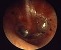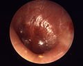 Treatment of acute otitis media is controversial. Much of the controversy centers around the difficulty of distinguishing viral infection from bacterial infection and the fact that viral infection can progress to bacterial infection at any time. Primary care providers, such as general practitioners and pediatricians, often have a monocular otoscope and perhaps a tympanometer as their only diagnostic tools, which makes this distinction difficult, especially if the canal is small and there is wax in the ear that obscures a clear view of the eardrum. Also, an upset child’s crying can cause the eardrum to look inflamed due to causing distention of the small blood vessels on it, mimicking the redness associated with otitis media. Because of a tradition of inappropriate prescribing of antibiotics for viral acute otitis media, their use has recently been condemned by many primary care practitioners for most cases of acute otitis media. Ear specialists tend to disagree with this philosophy and promote efforts to distinguish between viral and bacterial infection, so as to optimize treatment results by giving antibiotics only for bacterial infection. Acute bacterial otitis media can cause pain that leads to sleepless nights for both children and parents, can cause eardrum perforations, not all of which heal, and can spread to cause mastoiditis and/or meningitis, brain abscess, and even death if a severe infection goes untreated long enough. High fever can occur and can cause febrile seizures. Appropriate antibiotic administration prevents most such complications. On the other hand, it is generally agreed that acute otitis media that is purely viral will usually resolve without antibiotic treatment, although associated persistent middle ear effusions may require medical intervention.[3][4][5]